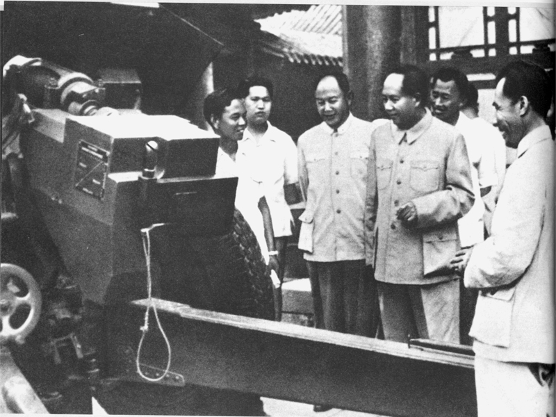 1958年6月6日毛澤東主席在國(guó)防工業(yè)匯報(bào)展覽會(huì)兵器館仔細(xì)觀看54式122毫米榴彈炮