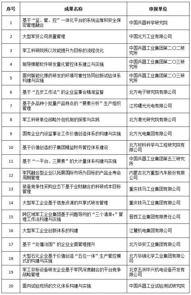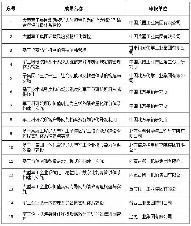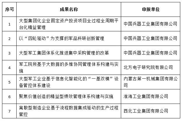 經(jīng)全國企業(yè)管理現(xiàn)代化創(chuàng)新成果審定委員會終審,第二十五屆全國企業(yè)管理現(xiàn)代化創(chuàng)新成果公布,中國兵器工業(yè)集團4項創(chuàng)新成果榮獲二等獎。