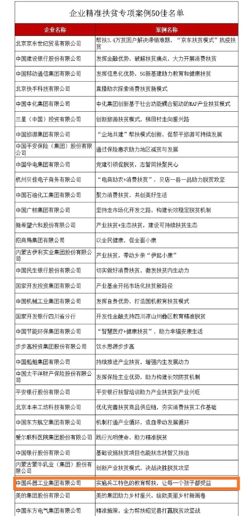兵器工業(yè)集團(tuán)教育扶貧獲評國務(wù)院扶貧辦2020年企業(yè)精準(zhǔn)扶貧專項案例“50佳” |