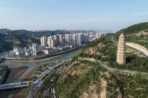 這是4月22日拍攝的延安市寶塔山(無人機(jī)照片)。新華社記者 張博文 攝