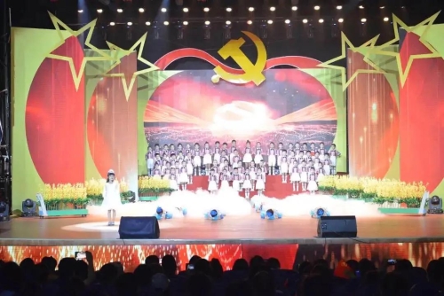 演出共分為三個(gè)篇章:“迎建黨百年、傳兵工精神”“憶長(zhǎng)征歲月、夢(mèng)璀璨中國(guó)”“承紅色基因、展幼教初心”。演出過(guò)程中掌聲不斷,高潮迭起,有合唱,有情景劇,有舞蹈,有快板,全科共361名演出人員,孩子們個(gè)個(gè)落落大方,神采飛揚(yáng),《在燦爛陽(yáng)光下》《燈火里的中國(guó)》《兵工情》,銘記紅色歷史,引導(dǎo)孩子們從小繼承革命傳統(tǒng),傳承兵工精神”。《春天的芭蕾》《我愛(ài)北京天安門》《水墨丹青繪祖國(guó)》《長(zhǎng)征路上》一首首歌曲鏗鏘有力,一段段回憶激蕩人心,師幼同臺(tái)唱出了對(duì)黨對(duì)祖國(guó)的熱愛(ài)和崇敬之情,讓人們感受到孩子們爭(zhēng)做新時(shí)代紅色接班人的信念、決心。《把愛(ài)獻(xiàn)給咱的娃》《未來(lái)的保衛(wèi)者》《炫彩青春》引導(dǎo)孩子們從小繼承革命傳統(tǒng),傳承紅色基因,讓紅色教育點(diǎn)亮童年,讓紅色精神代代相傳?!皞鞒屑t色基因,紅色精神代代相傳。”