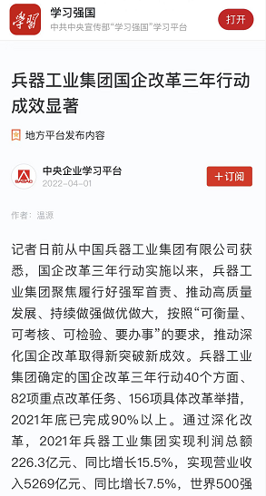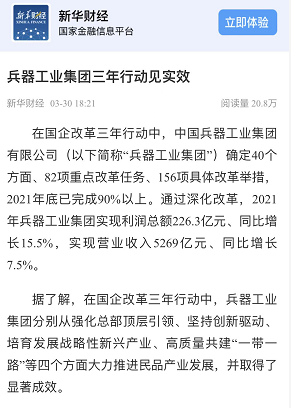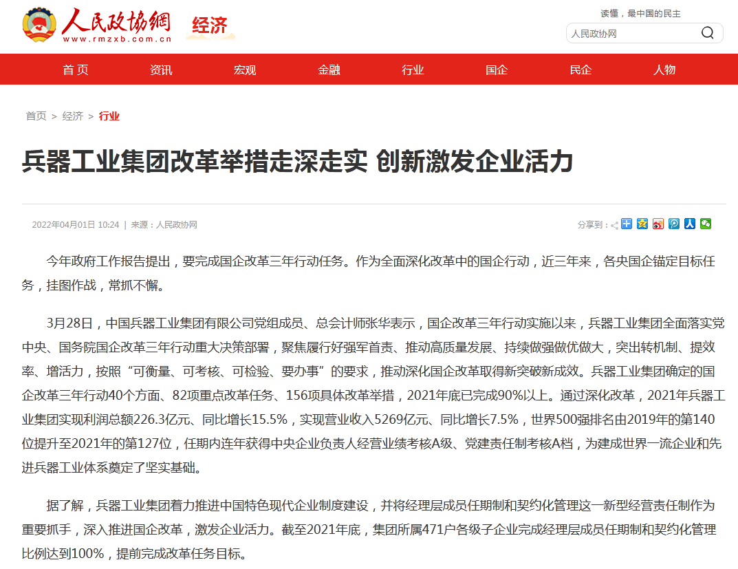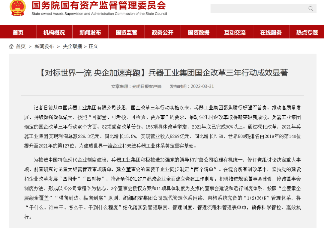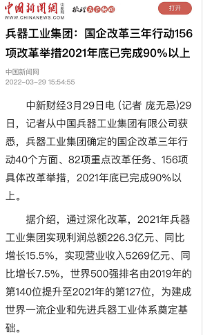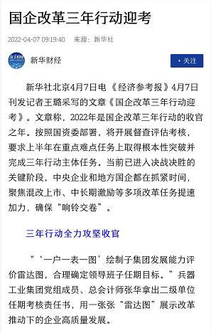 兵器工業(yè)集團國企改革三年行動工作成效引發(fā)廣泛關(guān)注丨國企改革看兵器 |