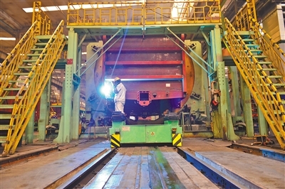 中國兵器工業(yè)集團(tuán)一機(jī)集團(tuán)北方創(chuàng)業(yè)公司生產(chǎn)線開足馬力生產(chǎn)鐵路車輛產(chǎn)品。日前,為圓滿完成1200臺(tái)C70E(H)型通用敞車生產(chǎn)任務(wù),該公司不斷創(chuàng)新生產(chǎn)組織模式,新、舊兩條生產(chǎn)線全面啟動(dòng),白、夜班雙班組織生產(chǎn),有效保障生產(chǎn)進(jìn)度。(王磊 攝) |