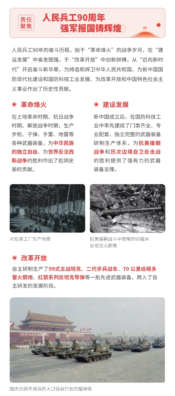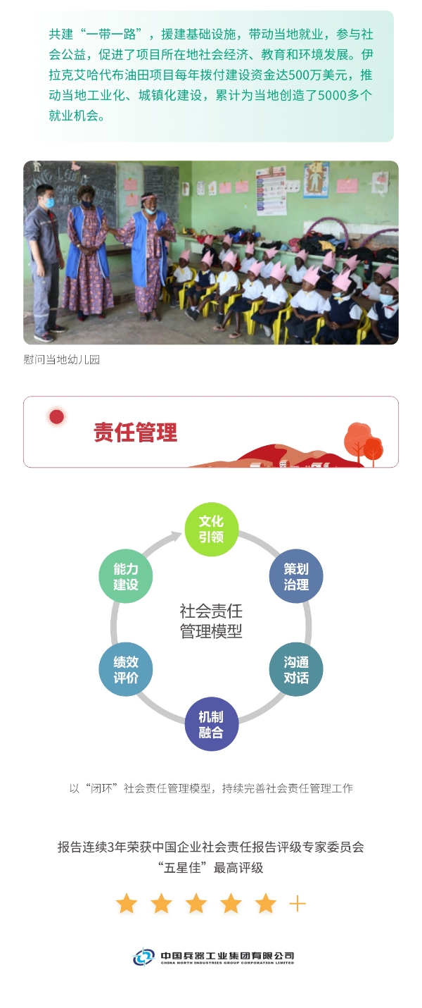 近日,兵器工業(yè)集團正式發(fā)布第十三份年度社會責任報告——《中國兵器工業(yè)集團有限公司2021年社會責任報告》,以“用心守護和平、用力爭創(chuàng)一流、用情溫暖社會”為主題,從恪守強軍首責、服務經濟建設、共創(chuàng)美好生活三個維度,向社會全面披露2021年度履責實踐和履責業(yè)績。《報告》連續(xù)第三年獲得中國企業(yè)社會責任報告評級專家委員會“五星佳”評級,兵器工業(yè)集團成為軍工行業(yè)唯一連續(xù)11年獲得五星及五星佳最高評級的企業(yè)。 一圖解碼兵器工業(yè)的“責任力量” |