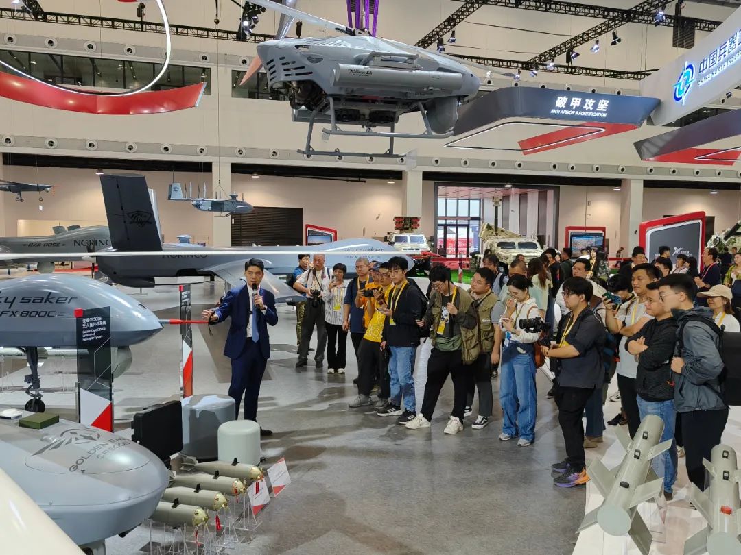 第十五屆中國航展即將開幕,在中國兵器館,各種重量級的展品都已經(jīng)就位。在11月10日下午的“中國兵器媒體日”活動現(xiàn)場,數(shù)十家主流媒體來到中國兵器館進行“探館”。 本屆航展,兵器工業(yè)集團著重展示數(shù)智賦能軍貿(mào)合成旅作戰(zhàn)體系。“探館”現(xiàn)場,新聞發(fā)言人向記者團介紹了本屆航展集團公司參展亮點、明星產(chǎn)品和技術發(fā)展成果,并對VT5-U輕型坦克、VU-T10無人平臺、SR5多管火箭炮、金雕CR500B無人直升機系統(tǒng)、指揮控制中心等參展裝備和技術作了重點介紹,媒體記者進一步了解了裝備的性能和特點。在無人火力展區(qū),記者團還走進仿真訓練體驗區(qū),親身“使用”單兵武器,體驗裝備性能。 在參觀完兵器工業(yè)集團展區(qū)后,媒體記者們紛紛表示,中國兵器館給他們帶來了前所未有的沖擊感,尤其是本次參展的眾多新裝備,讓人耳目一新,更加期待幾天后的軍貿(mào)新品發(fā)布會。 |