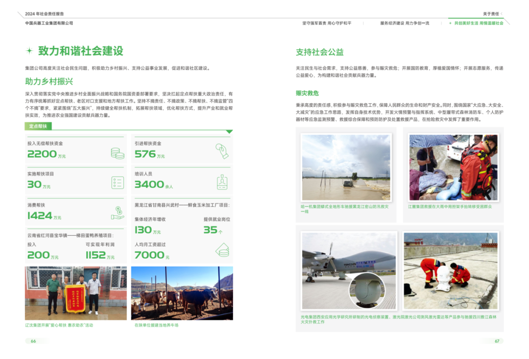 近日,中國兵器工業(yè)集團(tuán)有限公司正式發(fā)布《中國兵器工業(yè)集團(tuán)有限公司2024年度社會(huì)責(zé)任報(bào)告》。本次報(bào)告是集團(tuán)公司第16份年度社會(huì)責(zé)任報(bào)告,從堅(jiān)守強(qiáng)軍首責(zé)、服務(wù)經(jīng)濟(jì)建設(shè)、共創(chuàng)美好生活三個(gè)維度,全面展示集團(tuán)公司履行社會(huì)責(zé)任的實(shí)踐與成效。經(jīng)中國企業(yè)社會(huì)責(zé)任報(bào)告評(píng)級(jí)專家委員會(huì)評(píng)定,《報(bào)告》獲得“五星佳”最高評(píng)級(jí),成為軍工行業(yè)唯一一家連續(xù)6年獲此殊榮的中央企業(yè)。 兵器工業(yè)集團(tuán)2024年度社會(huì)責(zé)任報(bào)告 部分內(nèi)容摘錄 ↓↓↓ 文/社會(huì)責(zé)任部 |